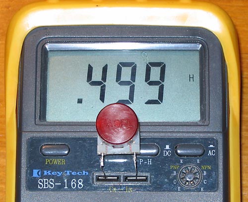 Ambos inductores tienen núcleo toroidal. El otro "Fasel", el amarillo, tiene núcleo hueco "de copa" que es la construcción típica de los "Stack of Dimes" o de los "Halo". Ya que los tenía fuera de la placa se me ocurrió medir la inductancia de ambos. Fijáos en los resultados cómo en efecto el "Fasel" se aproxima muchísimo al valor nominal de 500mH mientras que el otro se pasa un poco.