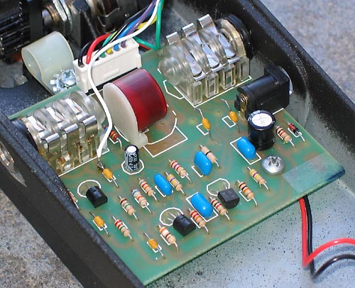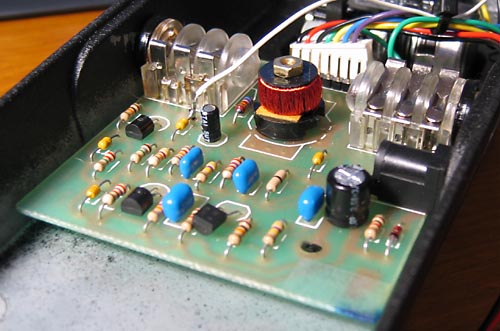 Aquí tenéis una foto de cómo me llegó el pedal. El inductor no es del tipo que llevan los pedales mejores como el CryBaby normal, el VOX o el Clyde McCoy. Está bobinado en un núcleo toroidal para ahorrar en hilo. El resultado es bastante flojo.