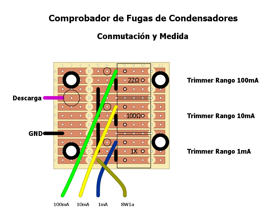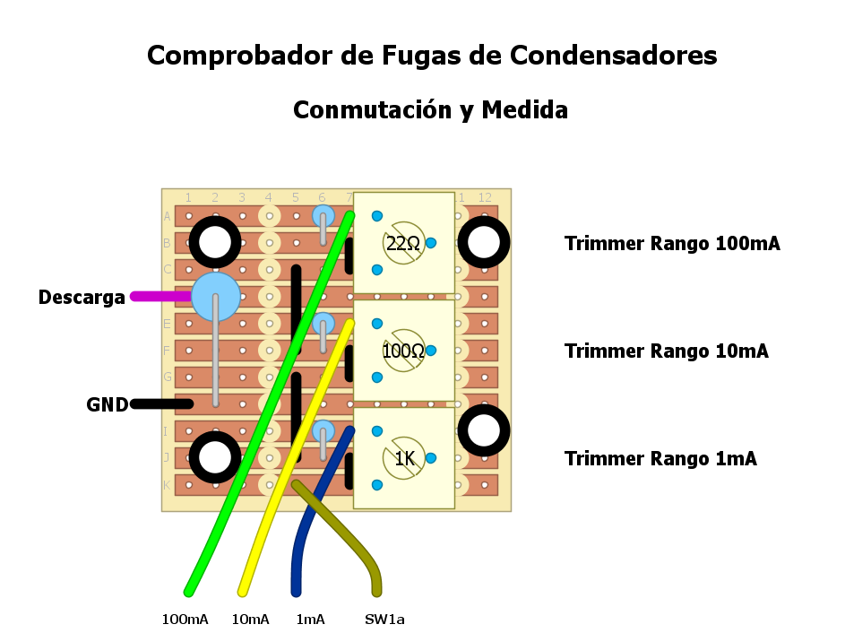 Si vemos que subiendo la tensión leemos una corriente inferior a 10mA, entonces podemos girar el conmutador a la siguiente posición.