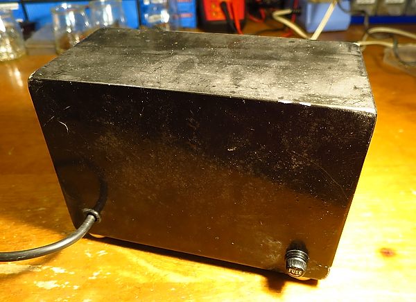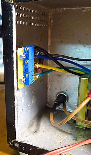 Como ya hemos visto antes, este montaje ha de hacerse necesariamente en una caja metálica conectada a tierra y con fusible de seguridad. En mi caso utilicé una vieja caja de unos "relés a válvula" que fabricaba mi suegro hace como 50 años. Está un poco "viejuna" pero ha resultado perfecta para este proyecto.