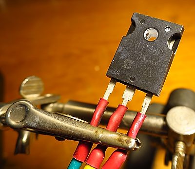 Al final puse también una resistencia de 12K, el valor estándar más cercano, que nos entregará un máximo de 30.5mA. En cuanto a la potencia de esta resistencia, el esquema original indica que ha de ser de 15W pero luego el diseñador se dio cuenta de que no es necesaria tanta potencia. Debido al modo en que hay que operar este aparato, empezando
