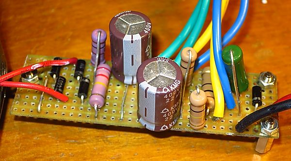 A continuación vemos el Fusible: Es necesario el incluir un fusible en este montaje. En el esquema de M. Caldeira se cita como de 100mA pero eso dependerá de lo que pongáis a continuación. En mi caso, hasta con 150mA se fundía en seguida así que puse uno de 250mA que parece ir bien. Ponedlo antes del interruptor de encendido, que es lo correcto.
