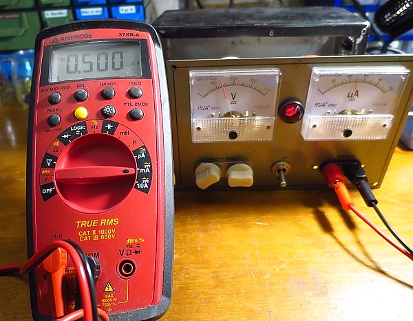 Una vez hecho esto, cambia la resistencia por un valor mayor de modo que entre en el rango de 10mA y repite el proceso del mismo modo. Al terminar de ajustar esta escala, subir por encima de los 100K y repetid para la escala de 1mA. La escala de 100uA, evidentemente, no necesita ajuste pues no lleva shunt. He podido comprobar que este microamperímetro, al igual que el voltímetro, es muy preciso.