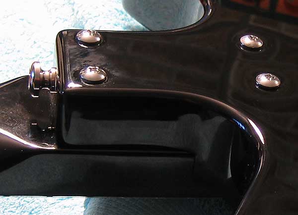En la última foto, fijáos bien en el golpeador con la famosa forma de "Seal" (foca) como en la original aunque con dos diferencias: el jack y el tornillo central. En las originales el jack estaba en el propio golpeador y en las reediciones está en el borde del cuerpo en una posición, por cierto, bastante incómoda para poner la guitarra en un soporte de pie aunque, eso si, con una fijación mucho más robusta ante los tirones de cable. En cuanto al tornillo, en la original estaba puesto en la mitad del golpeador y no en el borde como en las reediciones:
