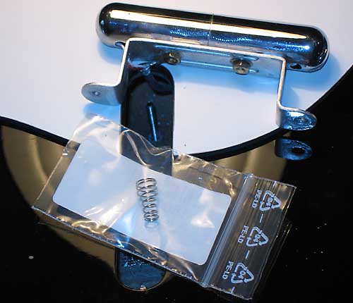 Siguiendo los consejos del famoso luthier americano Dan Erlewine quien, por cierto, insiste en que la que mejor suena de sus muchas guitarras y su favorita es una Danelectro U2 del '56 con la que le encanta retratarse y que tiene el mismo circuito que hemos puesto en estas ... pues eso, que siguiendo sus consejos he sustituido las gomaespumas por unos muelles y ahora la cosa ha mejorado mucho. Aconsejo a todos los usuarios de Danelectros que le echen un vistazo a ese video porque tiene una gran parte de él dedicado exclusivamente al ajuste y mejoras de estas guitarras.