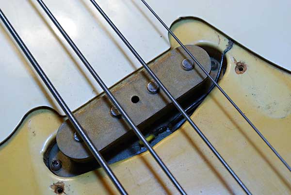 La pastilla es la "Single Coil" original de estos bajos y se conserva en un estado estupendo.