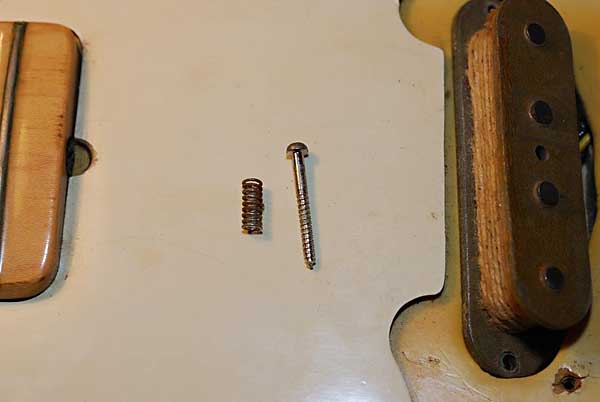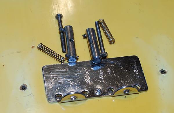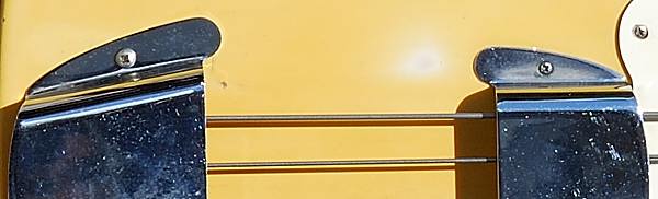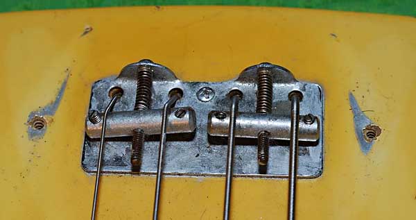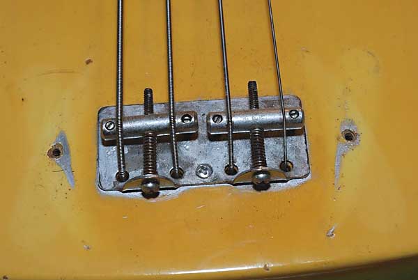 Los dos tornillos del "cenicero" del puente no son originales. Para cambiar las cuerdas del bajo es necesario quitar este "cenicero" por lo que las probabilidades de perder los tornillos y/o pasarlos de rosca son grandes. Más bien parece que fué esto último lo que ocurrió porque los tornillos que lleva ahora son sensiblemente más gruesos que los originales. Esa incomodidad añadida al estorbo que supone el "cenicero" de la pastilla al tocar hace que sea bastante raro el que hayan sobrevivido hasta hoy en dia en su sitio. La mayoría de estos bajos hace mucho tiempo que no los llevan.