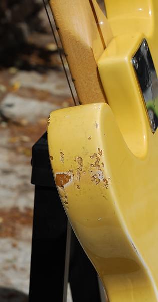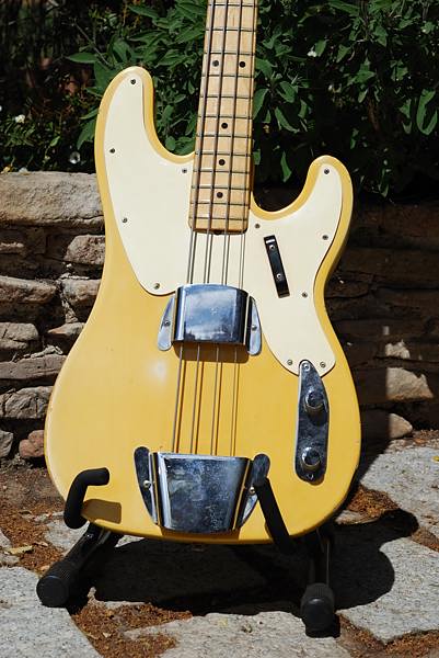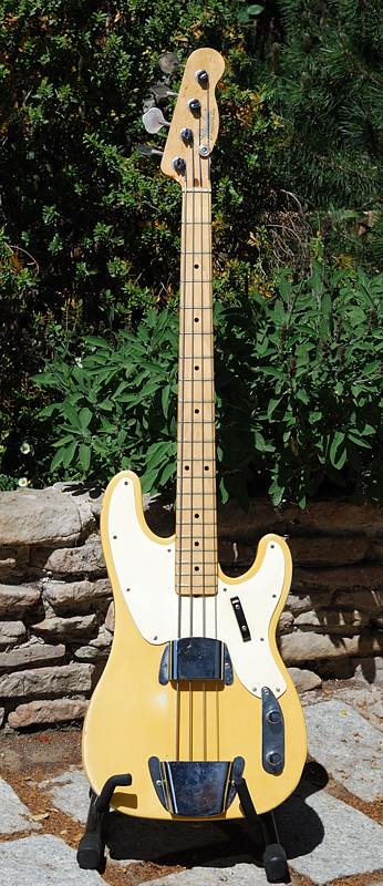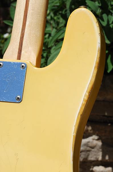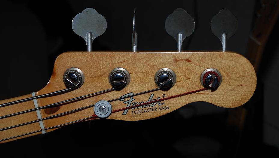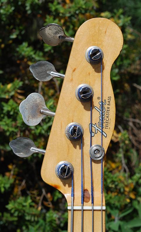 Lo que nos ocupa en esta ocasión es un estupendo bajo Telecaster Bass de 1969 de mi amigo Luis Casatejada. Este ejemplar lleva desde los '70 con él aunque no ha sido su primer dueño. Como podéis ver está en estupendo estado de conservación y está casi completamente original, como ya veremos más tarde. Se trata de un estupendo ejemplar con cuerpo de fresno ligero de lo que parece una sola pieza, acabado en poliéster grueso tipo "Blonde" sobre capa de "Fullerplast", mástil de arce de una sola pieza con "Skunk Stripe" y tuerca del alma en el zoque, golpeador blanco con sorpresa como ya veremos, única pastilla "single", poco peso y un sonido fantástico.