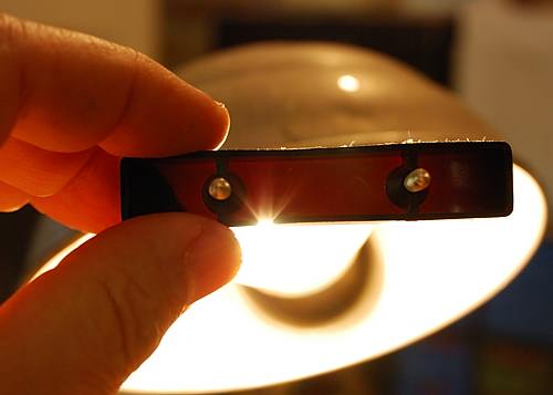 El plástico de este es rojo aunque no lo parezca... tan sólo hay que ponerlo al trasluz de una bombilla para verlo. El rojo es tan oscuro que parece negro pero la marca dejada en el golpeador tras 40 años es clarísimamente de ese color.