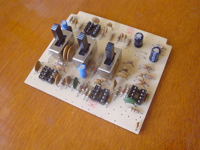 Suponiendo que el chip "lijado" es otro doble operacional y teniendo en cuenta el TL072 que sí se ve, evidentemente los otros cuatro operacionales (o dos dobles) que nos faltan están en la "zona escondida" debajo del cuadrado negro de resina, puesta allí con la intención de ocultar los componentes que hay debajo. Si os fijáis en la foto de la placa de J. Luja en axiomdrift.com arriba a la derecha podéis ver la zona en donde se quitó la placa negra que escondía los componentes. Veréis que hay una zona, debajo de R5 y R6 con unos "pads" que son el resultado de haber arrancado un chip de montaje en superficie de 14 patitas. Ahí es donde estaba el cuádruple operacional que nos faltaba.