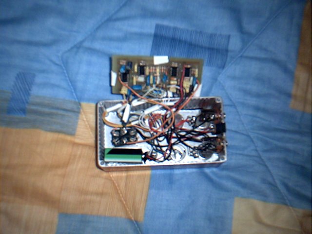 Otra cosa útil para evitar ruidos y oscilaciones es el utilizar cable apantallado para las conexiones de In y Out entre los Jacks-Switch-Placa. Conviene conectar la malla a masa en un extremo del cable unicamente, así evitaremos bucles de masa. El otro extremo lo podemos aislar con cinta aislante o, mejor aún, con macarrón termorretráctil. Lo podéis apreciar en la foto del interior que tenéis más arriba.