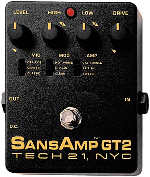 El manual indica que está "diseñado para usarse con amplificadores 'Full Range' o PA". Pues bien, enchufado a la entrada directa de mi combo Marshall a válvulas (JCM2000 DSL-201) suena de impresión. El consenso general entre los usuarios de los SansAmps es que el modelo "Classic" es más versátil y completo pero más orientado a ser usado en un ampli de P.A. o directamente a mesa y el GT-2, bastante más simple, es más útil para ser usado como "pedal".