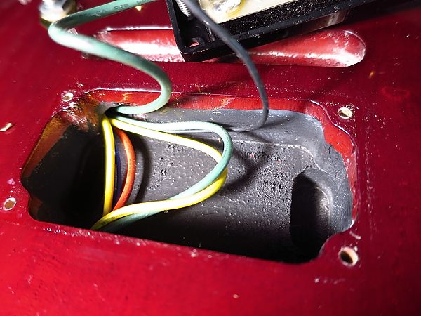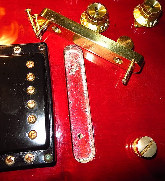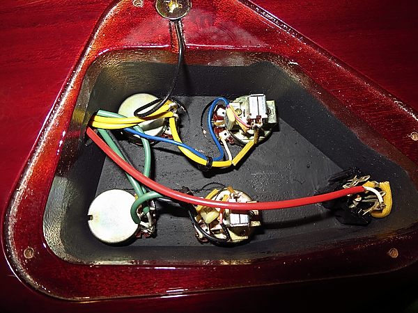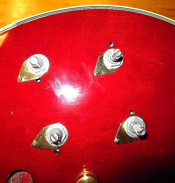 Las tapas de las cavidades del conmutador y los potes no siguen las reglas estrictas de Gibson. La del conmutador es similar pero con dos tornillos en vez de tres y la de los potes es muy diferente.