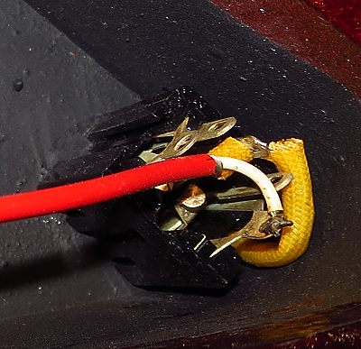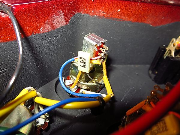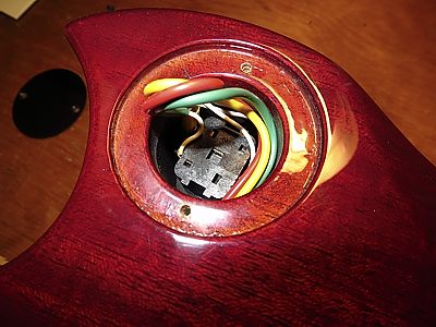 Sin duda serán difíciles de reponer. En la cavidad de los potes podemos ver un gran tornillo que es el encargado de conectar la masa del circuito con el cordal y, por lo tanto, con las cuerdas.