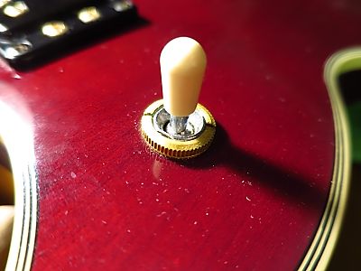 El switch es de plástico aunque de buen tacto, con una tuerca dorada con un par de rebajes para apretarla con una herramienta especial.