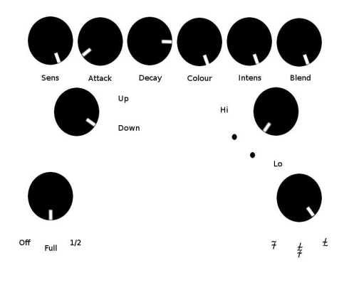 ¡Y no acaba ahí la cosa! Con el control "Blend" puedes hacer que sólo se oiga la señal original (el input), o ir mezclandola sucesivamente hasta que incluso sólo se oiga la "coloreada". Imaginároslo. Se puede meter una guitarra por el loop de efectos y por el input meter una percusión que no se oiga (jugando con el "Blend" para eso), pero que dispare el filtro, o incluso un cable que lo toquemos con los dedos para activarlo. Como véis, las posibilidades son infinitas.