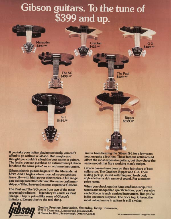 Se trataba de una respuesta de una Gibson en momentos bajos a la competencia tanto de su rival Fender como a la creciente invasión japonesa. Gibson hizo estas guitarras con métodos Fender: cuerpo de aliso, mástil de arce canadiense atornillado, una pastilla single, montaje de la electrónica en el golpeador.... La historia nos muestra que también Fender hizo lo contrario con el mismo poco éxito que estos. Parece que cada uno tiene su nicho y cada vez que intentan salirse de ahí, el fracaso está practicamente asegurado.