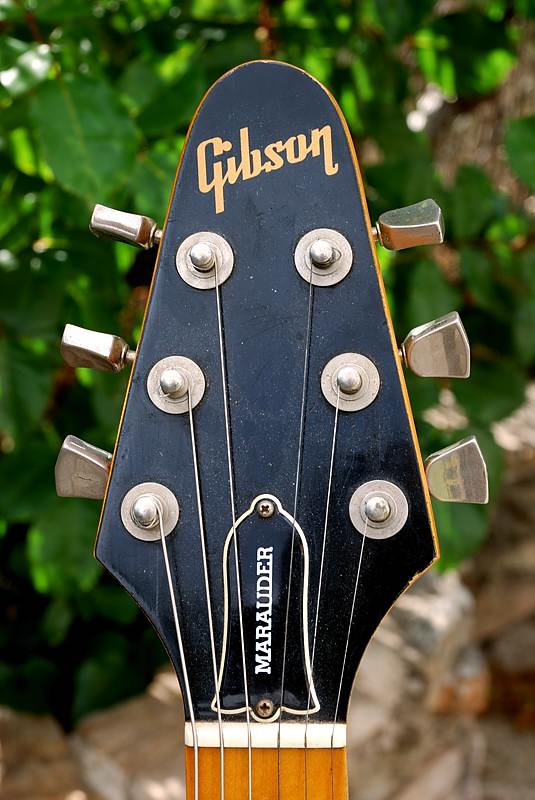 El mástil también es un caso rero dentro de la línea Gibson pues, como hemos visto antes, en un intento de "Fenderizar" el modelo, se hizo de arce duro canadiense en tres piezas (mas las dos de las "alas" de la pala, típico de Gibson) con diapasón del mismo material sin "binding" y marcadores perloides redondos, pala del tipo Flying-V y alma tipo Gibson con tuerca standard y tapa tipo campana tradicional con "Marauder" serigrafiado.