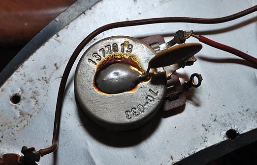 Antes dije que esta guitarra era casi 100% original a excepción de un componente. Me refería al potenciómetro de volumen que ha sido sustituido. Originalmente los potenciómetros que lleva esta guitarra son: