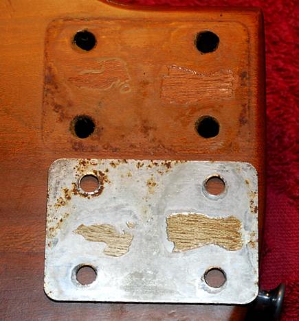 La placa de sujeción del mástil es algo menos elaborada que las Fender pero el principio de funcionamiento es exactamente el mismo.