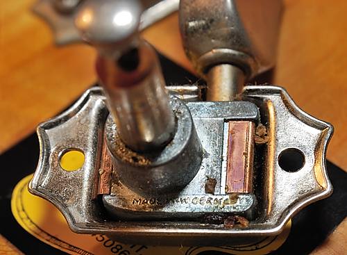 Las clavijas son también un caso curioso. Por fuera llevan una carcasa que pone "Gibson" y un dibujito de adorno pero una vez desmontadas vemos que no es así.