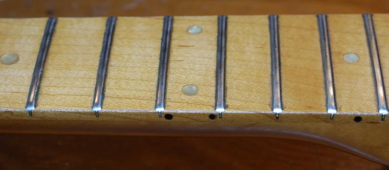 Cuando me llegó esta guitarra estaba desajustadísima de altura de cuerdas pero sobre todo de curvatura de mástil... no exagero si digo que tenía 2mm de altura del bordón en el traste 7 con la cuerda pulsada en los trastes 1 y 17 lo cual es una barbaridad. Temiéndome lo peor, saqué la tuerca del alma lo cual no fué fácil pues estaba bastante agarrotada. Tras lubricar con un poco de vaselina pude por fin ajustar el alma con suavidad. Por precaución lo hice con el mástil fuera de la guitarra sin la tensión de las cuerdas, claro, y muy atento a ruiditos del alma según iba apretándola. Afortunadamente no hubo crujidos de ningún tipo. Costó más intentos de lo que usualmente se consideraría normal pero al final las cosas fueron a su sitio. Tras poner el mástil y las cuerdas, un ligero ajuste final y quedó perfecta. Afortunadamente la cejuela, del mismo material habitual de Gibson, estaba muy bien tallada lo que permitió una acción final muy buena.