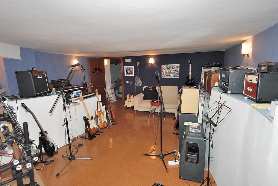 El Sibiyibi-dó, que ya hace tiempo que dejó de llamarse así en la práctica pasando a ser conocido mundialmente como "El Garito del Calambres" o simplemente "El Garito", está más o menos acabado. Siempre hay cosas nuevas... algún soporte de guitarras por aquí, algún adornito por allá, algún chisme/guitarrica nueva, algún chisme prestado, algún chisme en fase de reportaje, etc, pero más o menos está acabado. Alguien me prestó un angular de los gordos para la cámara y pude hacer estas fotos.: