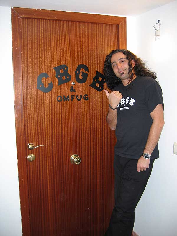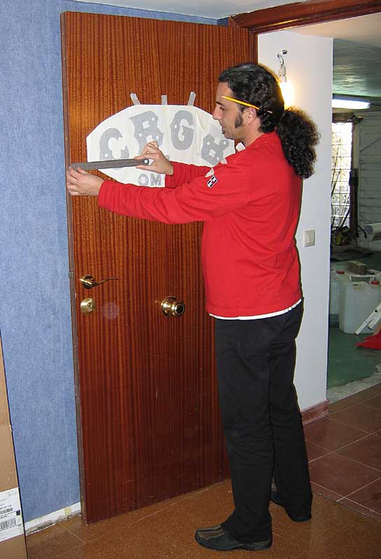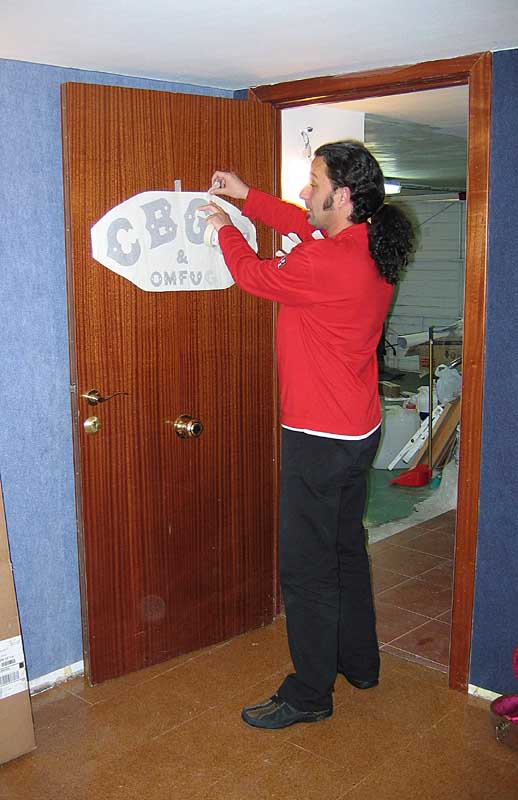 Rubén visita el nuevo (e inacabado) garito del Calambres. Lo primero es poner el rótulo "sibiyibi onfú" de la puerta, cortesía de Dbsanz. Gracias, macho: