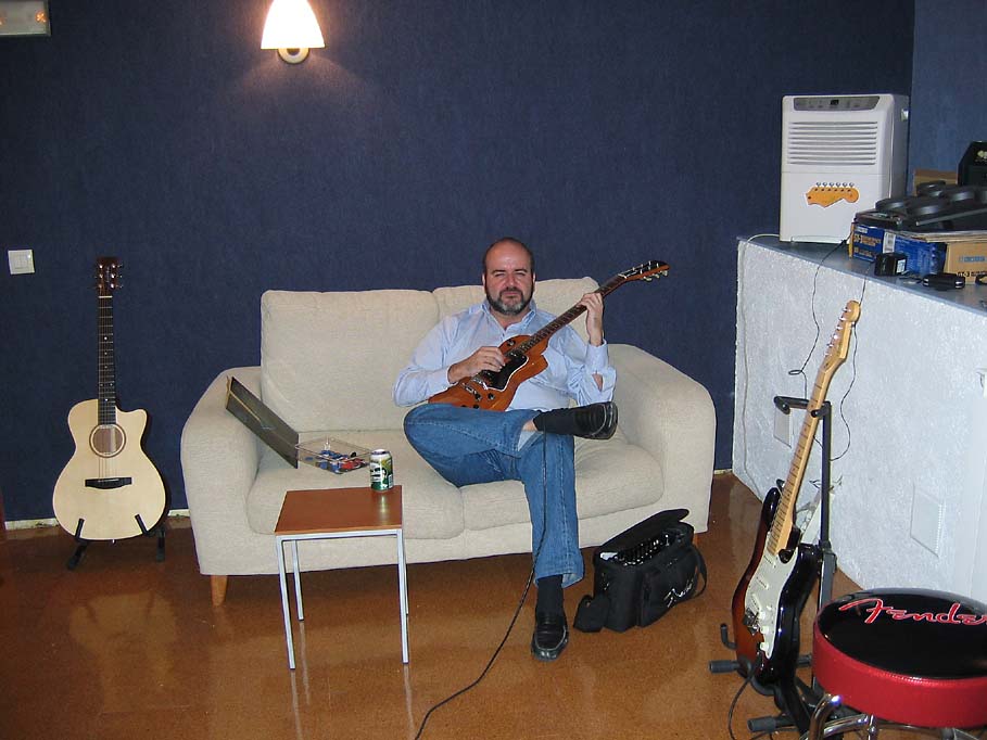 Mola, ¿hein?... Y en estas fotos sólo se vé la mitad del garito, que conste. Hoy en día ya está en "plena producción". Aquí podéis ver el otro lado con el sofá en el que el amigo Lapsteel parece que se lo está pasando bomba
