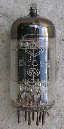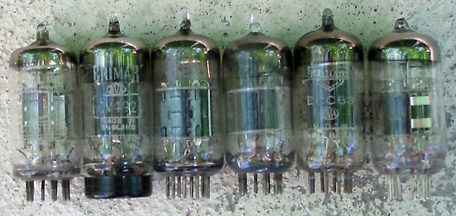 - Previo: El esquema original está diseñado para una válvula de previo de tipo doble triodo compatible con la 12AX7 original. Esta válvula da un tono "gruñón" muy deseable para según qué cosas pero en mi opinión, una con menos ganancia se combina mejor con la 5881 de salida. Así usé una 12AT7 (ECC81) ó 5751. Es un doble triodo compatible con la 12AX7 pero de menor ganancia. La 12AX7 (ECC83) tiene una ganancia de 100 y esta de unos 70. Me parece que suena el ampli más bonito con esta. Sin embargo creo que si usamos una 6V6 de salida puede que nos sea más útil una 12AX7.