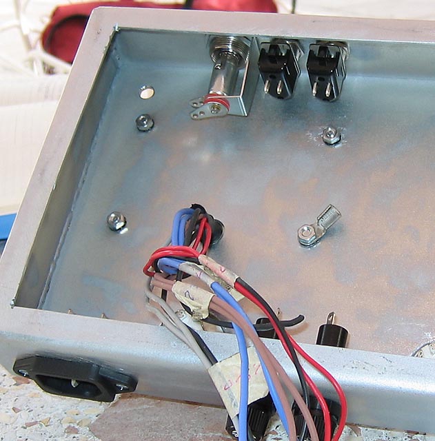 Punto de masa en estrella del chasis: una hembrilla "Faston" en un tornillo del trafo de alimentación.