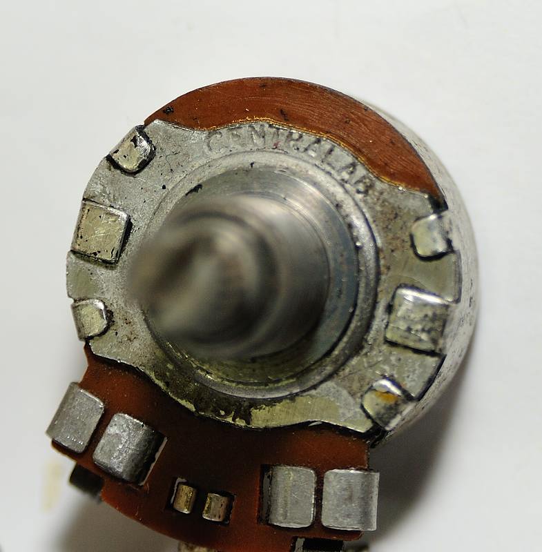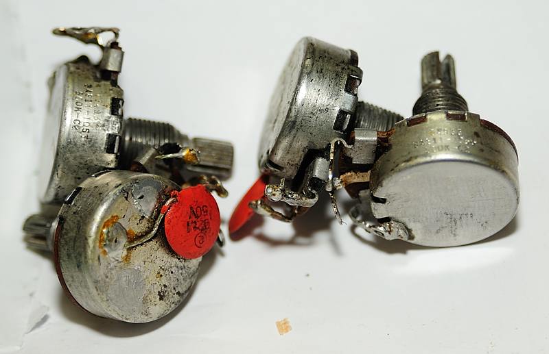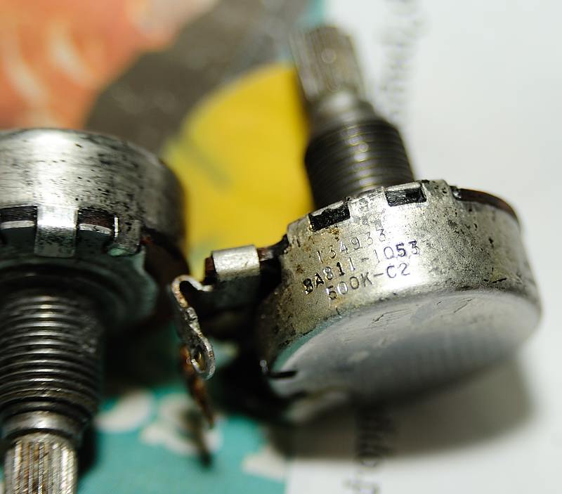 Los potenciómetros no son de "cuello largo". No existían en esa época. La cavidad de potenciómetros se adaptaba a este tipo de controles.
