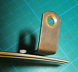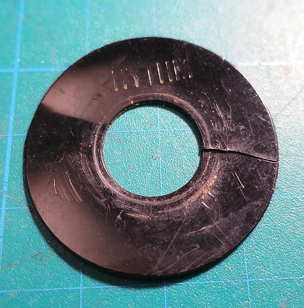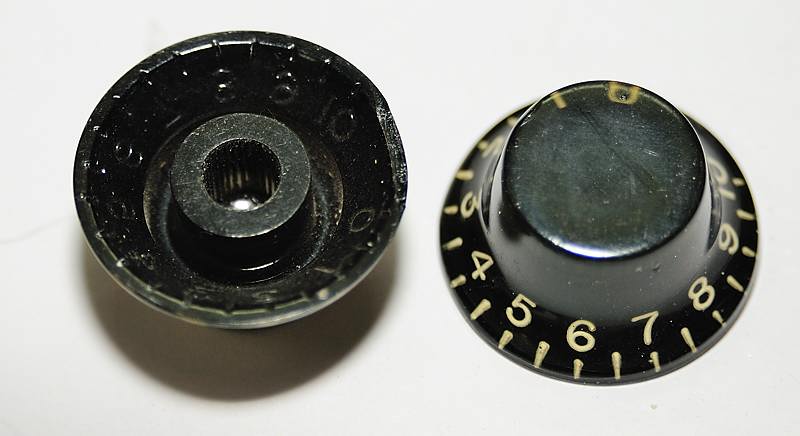 El anillo de plástico original del switch, también en el estuche, está partido (eran muy finos). La guitarra traía puesto uno de los '90 gastado pero entero. Se puso el original tras reforzarlo por la parte de atrás para evitar que siguiese partiéndose.