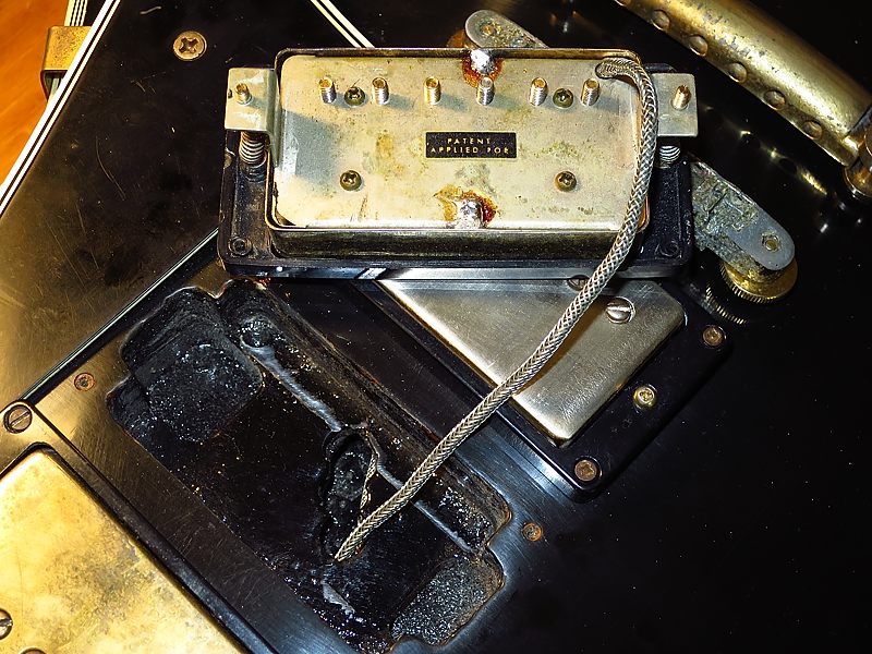 La guitarra tiene las 3 pastillas "PAF" (Patent Applied For) originales con sus cubiertas. Como se puede ver en la siguiente foto, la cubierta de la pastilla del puente no conserva nada del dorado original.