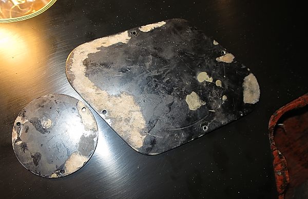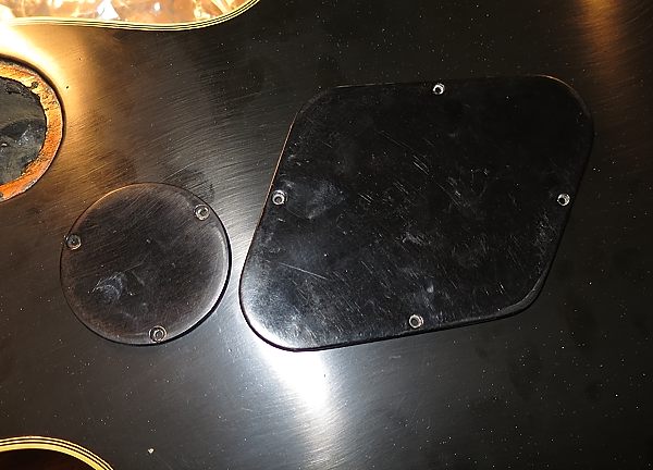 La guitarra traía puesta las tapas de plástico traseras nuevas de los años '90 conservandose las originales en el estuche. Las del '59 fueron reinstaladas tras la restauración.