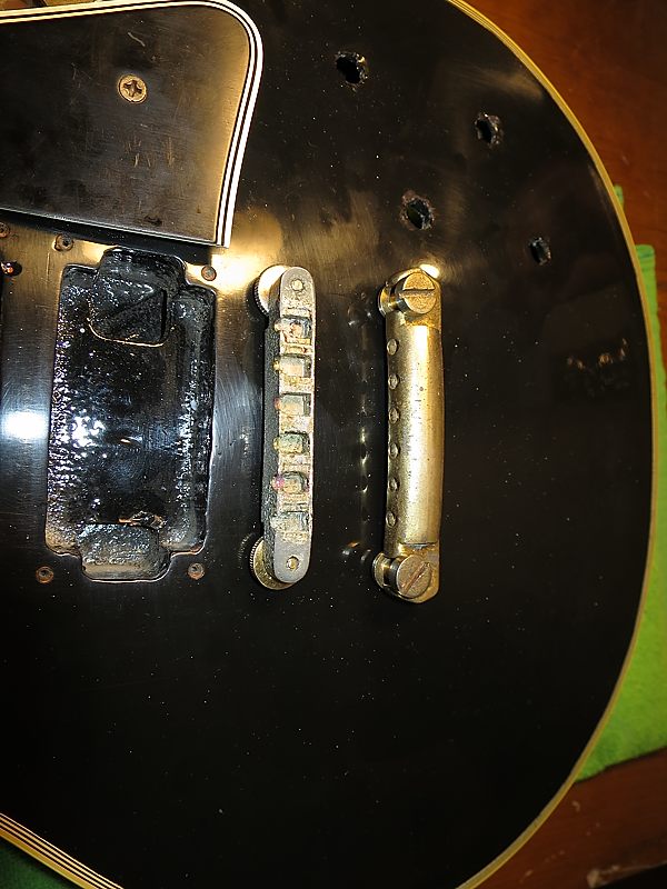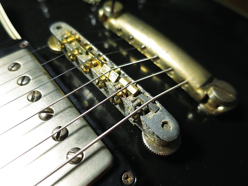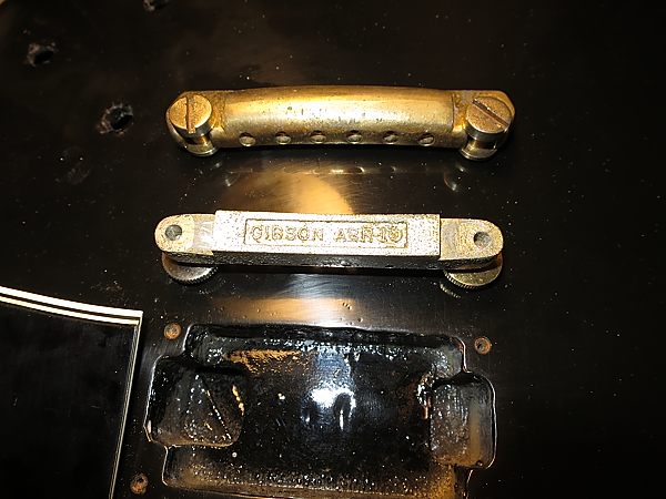 El puente es un "Tune-O-Matic" sin el "alambre" usado para evitar que se pierdan las silletas en caso de rotura de una cuerda, como eran los de esa época. Está bastante usado y corroído, pero no deja de ser un original del '59: