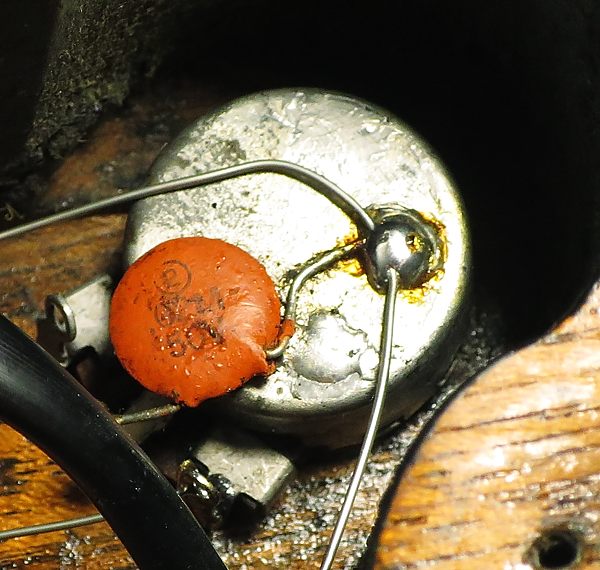 Los condensadores son también originales, cerámicos "de lenteja" de 20nF y 50V. Existe la creencia generalizada de que todos los condensadores de esa época eran los Bumblebees o Black Beauties pero como vemos no siempre era así.