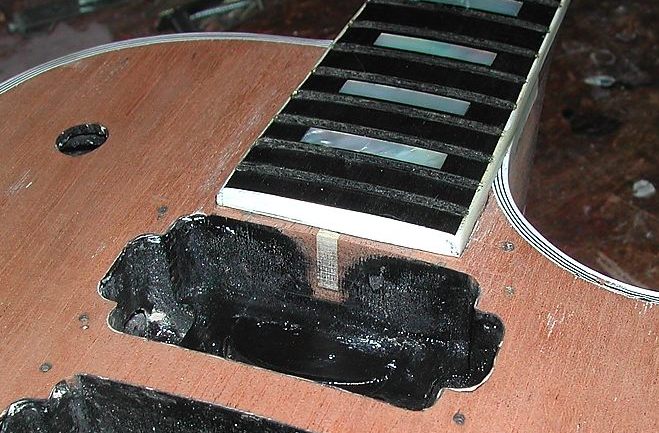 Cuando la guitarra quedó en la caoba desnuda Enrique llegó a plantearse el dejarla tal cual, para que se viera bien que no tenía ni roturas ni agujeros extra, por ejemplo de Bigsby, distinto clavijero, distinto puente, etc. Posteriormente y tras consultarlo con miembros del Les Paul Forum y MyLesPaul, la mayoría insistieron en que se le diera el acabado de nitrocelulosa en negro Black Beauty original pero, eso sí, documentando bien el proceso con fotos.